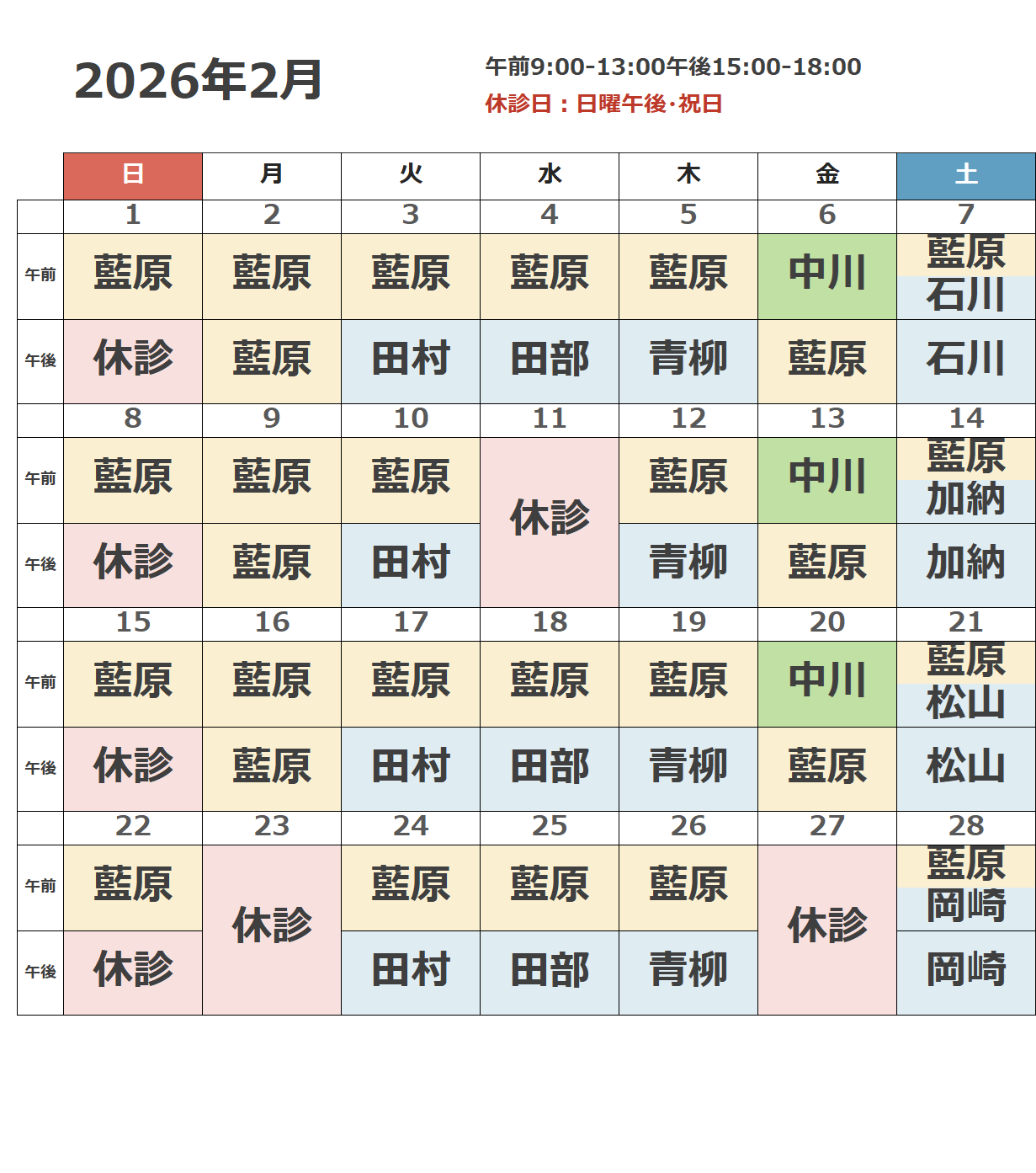 藍原院長の外来診療は休診となりますが、青柳医師による代診を行います。